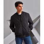 Tonal fashion coil zip on centre front with signature zip puller. Insulated body and sleeves. 100gsm lightweight polyester fill. Fully-lined in tonal polyester. Bomber style collar. Welt pockets with rubberised stud opening, striped grosgrain trim with rectangular eyelet. Tonal elasticated cuffs and hem. Internal double jet zipped pocket. Internal zipped opening for embroidery access. Product contains no branded neck label.* Removable Kimble or looped garment tags. Inner seam label holds important product information on one label with a second label containing brand information which can be cut-away.